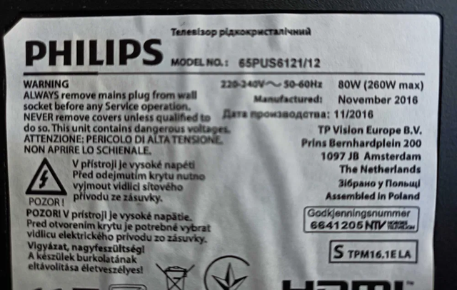 POWER SUPPLY 715G6887-P01-006-002M PHILIPS 65PUS6121 / 12